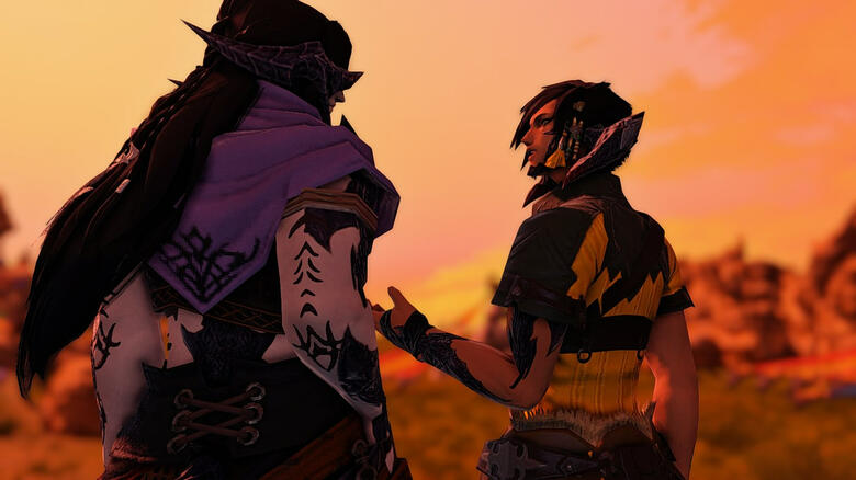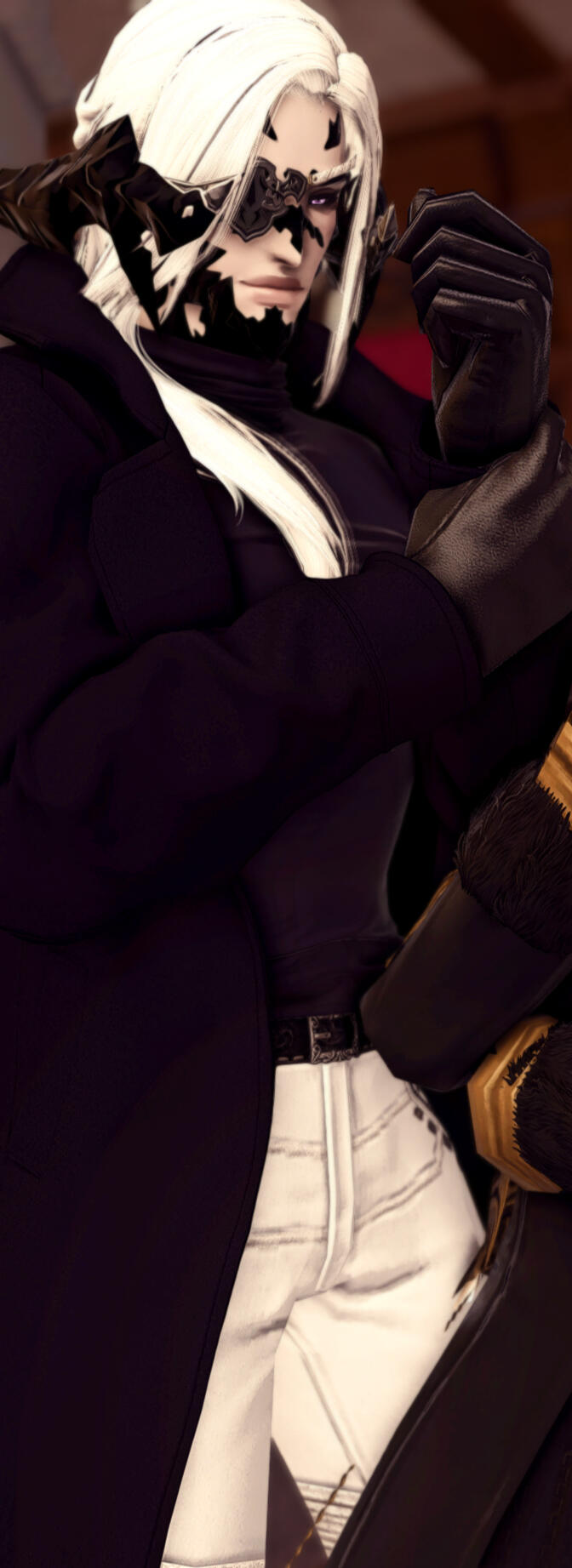 A day later, he awoke. He did not know how. His mortal wound had miraculously— could this awful thing be called miraculous?— scarred over. He was still caked in his own blood, horrified, and alone. An uncanny feeling settled in his stomach. He was not supposed to be here.He dragged himself away. He could not return to his family like this. After months, he found himself in Kugane, where he lived doing odd jobs for gil to keep himself afloat. The real money-maker, though, was illegal pit fighting. Feeling like his own body had betrayed him, still haunted by pain and the chill of death, he threw himself into fighting as if to punish himself. It kept a roof over his head. But after enough time (and being stabbed in the abdomen by an opponent who snuck in a knife), he left that too. He became a bartender for the graveyard shift of some small dive bar, saving whatever money he could.Years passed. He still felt like a stranger to himself. He could not truly bear his heart to the first woman he fell in love with, another xaela named Peony, because the wounds still were too raw. He ran away again. A ship took him across the sea to Eorzea, where he now resides as a traveling mercenary and handyman. His travels far from home have softened his edges. So has his traveling companion and love of his life, a viera named Phersu.He likes the small things now. Cooking, peoplewatching, fishing. Bars and taverns still serve as a comfort for him. Despite everything, he's a gentle man.